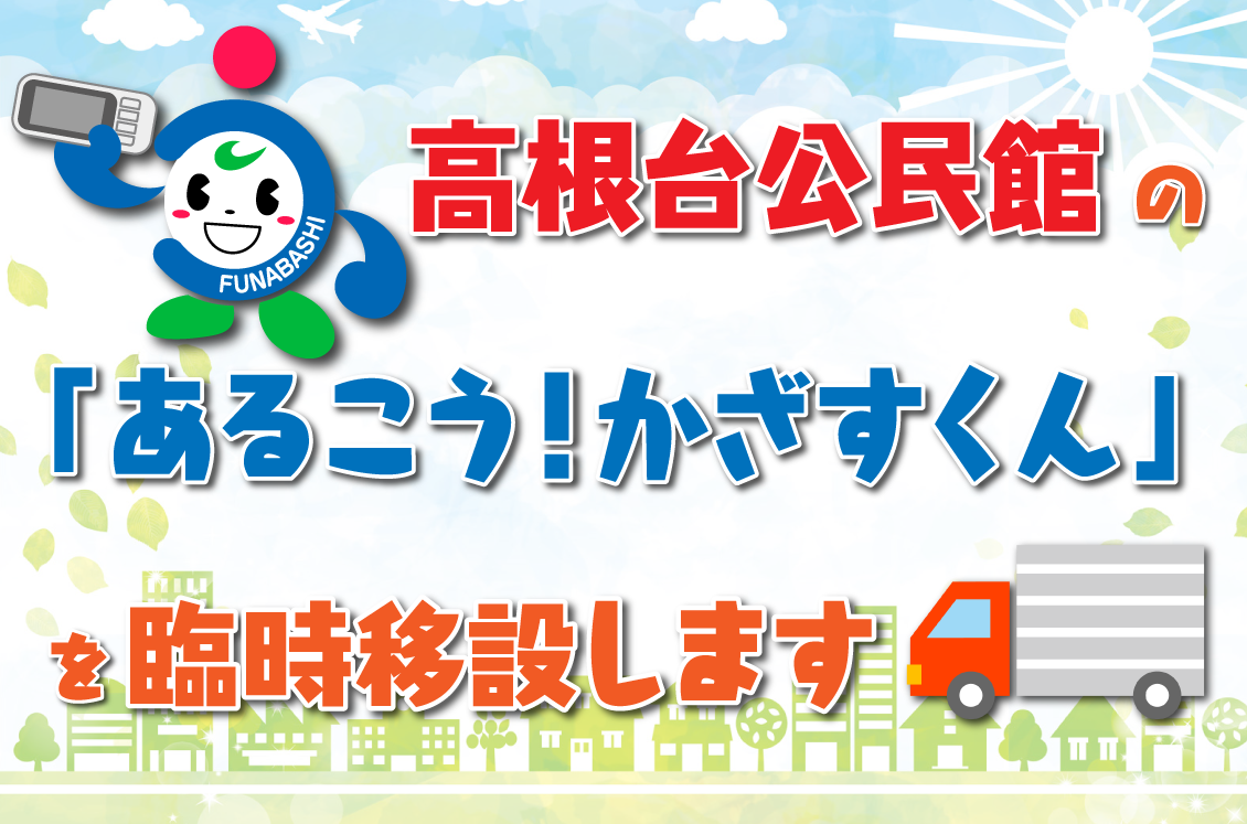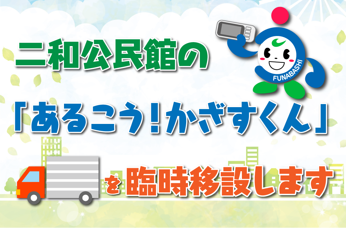 「二和公民館」の改修工事の完工まで、「あるこう!かざすくん」を二和・八木が谷地域包括支援センター(船橋市二和東6-17-39)に臨時移設しています。 -